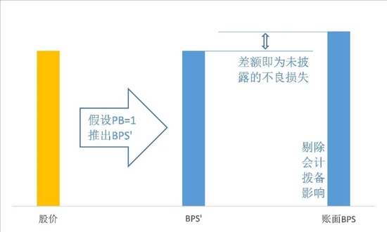 这一解释看似符合逻辑。基于这一解释,从市场PB出发,可以用估值模型倒算出来(将估值公式转换为反函数,自变量是PB,因变量是不良率)投资者所认为的真实不良率(一般称为市价的“隐含不良率”)大概是多少。当时算出来大概在8%左右。由于大部分上市银行在业内均处于较优水平,它们的不良率不大可能达到8%,因此,当时得出的判断便是PB已处于底部,不会再大幅下行。