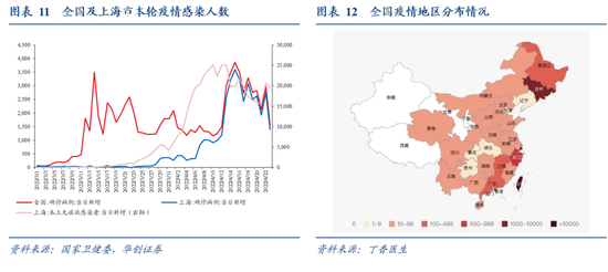 近期疫情防控出现积极信号,但形势仍较为严峻。每日新增感染人数在4月13日达到峰值29317人,此后呈波动下降趋势。4月17日至24日,当周新增感染人数合计为14.87万人,较上周减少3.55万人。虽然全国疫情形势呈现逐渐企稳态势,但感染人数仍在高位波动,地区之间交叉输入影响明显,疫情波及除新疆、西藏、甘肃、宁夏、陕西之外的26个省份。
