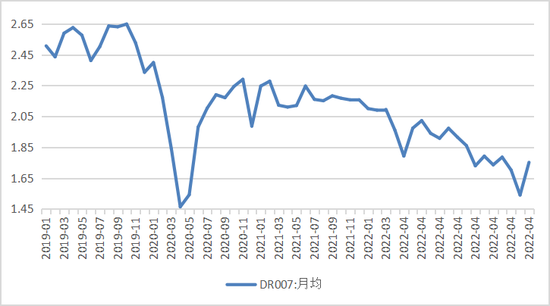 注:2022年3月之前(含)为月均DR007,4月份为每日DR007数据。