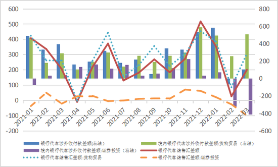 图4:银行代客涉外收付和结售汇状况(单位:亿美元)