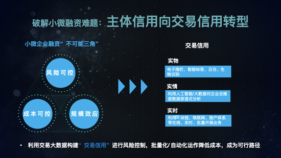 他表示,无论外部环境如何变化,小微企业都是整个产业链、供应链上的一环,我们去研究他的上下游、生产经营、贸易往来、税收、发票等情况,达到交易信息可见、交易场景可信、交易风险可控。