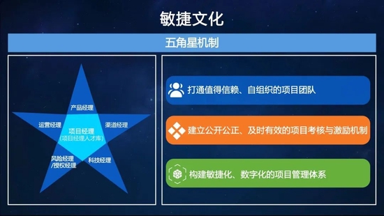 这样灵活的机制打破了银行固有的部门竖井和既有的流程制约,针对具体项目精简冗余步骤,优化授权机制及考核体系,实现团队高效协同合作,最大程度地提升了效率。
