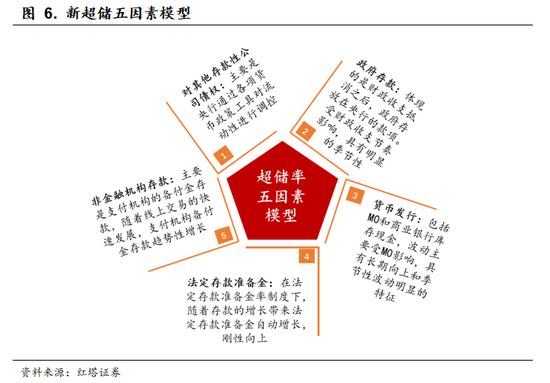 站在央行的角度来看,在这五个因素里面央行能够主动把控的主要是对其他存款性公司债权;而政府存款、货币发行以及非金融机构存款这三项则是偏向于外生的。