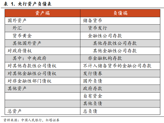 央行负债端一共包括7大项,分别是:1)储备货币;2)不计入储备货币的金融公司存款;3)发行债券;4)国外负债;5)政府存款;6)自有资金和7)其他负债。