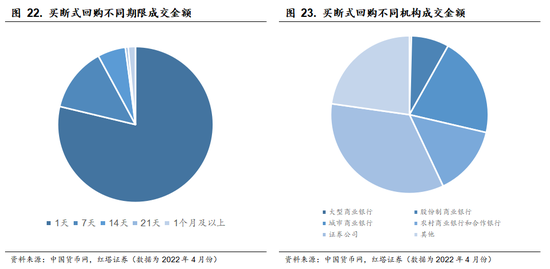 从数据上也能够看到,2022年4月全月买断式回购的总成交金额仅有3920亿元,且大型商业银行和股份制银行的成交金额更是只有638亿元,这也表明大机构并不喜欢这种成交模式。而同业拆借规模达到了10.9万亿,质押式回购则达到了103.8万亿。