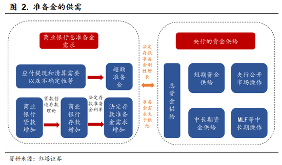 在资金供需框架下,央行一方面通过各项货币政策工具来为商业银行提供流动性。另一方面,则可以通过降低法定存款准备金率,从而直接降低银行的资金需求。