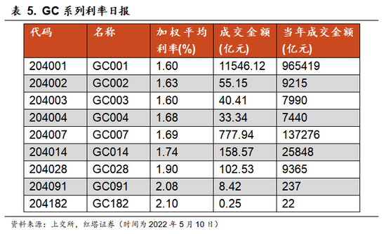 一来从期限上看,GC系列利率包括GC001、GC002…GC182等共计9个品种,按照交易所的规则则分别为2040XX等。比如GC001对应的证券编号是204001。
