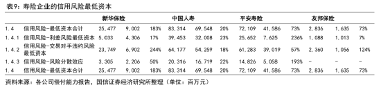 (1)寿险业务保险风险最低资本:主要是损失发生风险最低资本提升幅度较大,平安人寿约700亿元,中国人寿约300亿元,新华保险约180亿元,友邦中国约32亿元,而退保风险和费用风险对应的最低资本变化较小。