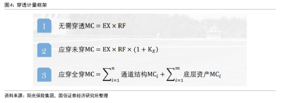 (2)基金管理产品:对第三方基金管理人以信托计划、资产支持证券和银行金融管理产品等形式所管理的资产,在旧规则下只是进行全面审查,但是在新规则下明确了穿透要求和量化指标,对无法穿透的资产产品基础风险因子设定为0.6,其中偏固定收益类资产为交易对手违约风险的基础风险因子,偏权益类资产为权益价格风险的基础风险因子。