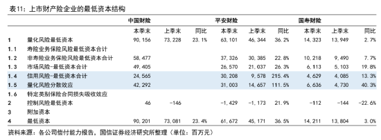 在最低资本方面,中国财险同比上涨23%,太保财险24%,平安财险37%,国寿财险3%。