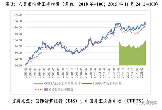 人民币持续升值孕育汇率超调的风险。上次自2005年“7.21”汇改以来,人民币双边和多边汇率均累积了较大涨幅。到“8.11”汇改前夕,人民币汇率中间价较累计升值35.3%;人民币名义和实际有效汇率分别升值46.3%和56.6%,其中2014年下半年以来分别升值14.8%和14.1%。这与2007年以来中国经常账户顺差与GDP之比回落,成为“8.11”汇改之后看空人民币的重要理由。这波人民币升值已步入第三个年头。起初主要是人民币兑美元双边汇率升值,导致企业出口从接单、生产、发货到收款期间蒙受财务损失。2021年起,逐渐转为人民币双边汇率升幅收窄,但多个口径的人民币多边汇率指数刷新历史新高,对企业出口造成竞争力冲击(见图2和图3)。当前,人民币升值与运费、原材料成本、能源资源价格上升,并列为中国外贸面临的“四升”挑战。2021年11月份,有关方面首次提示“偏离程度与纠偏力量成正比”。若未来中国经常账户顺差收敛或出口市场份额回落,不排除重新成为市场看空做空人民币的依据。