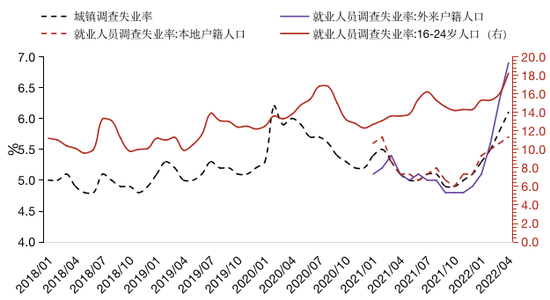 三重压力强化直接加大就业压力。4月,城镇调查失业率、本地、外地户籍就业人员调查失业率和16-24岁人口失业率均出现上升,分别较3月份高0.3、0.1、0.6和2.2个百分点,后三类失业率均达到有调查数据以来的最高水平(图3)。此外,实际上还有相当一部分因为疫情暂时停工1-2个月的劳动者未被纳入失业范畴。因此,如果在失业压力基础上考虑停工压力,则居民收入受损程度还要有所上调。无论是当期收入减少,还是失业、停工带来的收入预期降低,都将显著影响居民消费行为,这时候需要通过直接、有力的政策避免陷入“就业压力-收入受损-消费不振-需求不足-就业压力”的自我强化式循环。