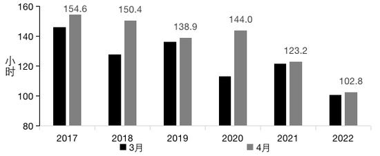 4月基建回落的首要原因是开工受阻。疫情影响下,一些项目建设工地被动停工。特别4月以来,疫情对长三角、珠三角、京津冀、东北等地区的经济活动造成影响,这些地区在中国经济体系中具有重要地位。3月份,上海的“城市基础设施投资”投资当月同比增速已转负,达到-5.3%,考虑到疫情在4月影响更大,对应的4月增速可能更低。全国层面,3、4月份挖掘机开工小时数分别较2021年同期降低17.4%和16.6%(图9),是数据以来的同期最低水平,这反映出工程项目开工受阻。重点企业也反映,基建项目的钱虽然到位了,但目前首要问题是无法开工、无法形成实物工作量。