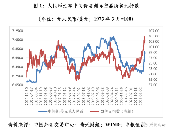 第二次是2020年,先抑后扬。2020年前5个月,受新冠疫情冲击和地缘政治因素影响,人民币总体承压,到5月底跌至十二年新低。但2020年6月初至2020年底,疫情防控好、经济复苏快、贸易顺差大、中美利差阔、美元走势弱等利好共振,人民币汇率中间价由7.13升破6.60,累计上涨9%。再到2022年3月初,涨至6.30附近,累计上涨13%。不过,这轮升值尚未突破2018年初的高点(见图1)。