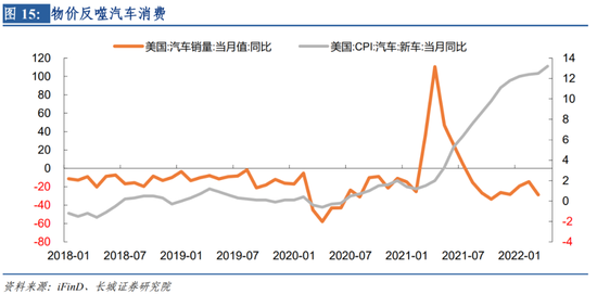 现阶段,美国经济存在步入滞胀的风险,汽车销量的低迷预示着经济增长困难。2022年3月,美国汽车销量25.8万辆,同比减少28.74%。随着汽车价格的不断上涨,美国汽车销量已经连续8个月同比负增,汽车价格暴涨已经反噬了汽车消费。我们认为,物价居高不下使得短期内美国汽车销量无法修复。见微知著,汽车销量的低迷反映了美国整体消费降速。按照汽车销量与经济增长的关系,美国经济或将存在停滞风险。