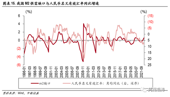 这一轮全球大通胀离不开发达国家史无前例的货币宽松政策。疫情以来,我国货币政策先进先出,在2020年二季度经济快速反弹时便开启正常化进程。同时,在去年下半年经济下行压力加大时,货币政策开始转向稳中偏松阶段,总量和结构性工具相继加码稳增长。我们以前述同样的方法对M2进行处理获得M2的供需缺口。2012年是M2供需缺口的转折点,之前表现为“大开大合”和“快进快出”,之后转变为围绕趋势小幅波动,基本上与潜在货币需求匹配。波动下降不代表经济规律失效,例如2017年国内金融去杠杆开启M2缺口下行,至2019年年中中美贸易最悲观时刻逐渐过去后触底;再至2019年三季度M2缺口触及上轮高点,最后是2021年三季度稳中偏松的货币政策推动缺口触底反弹。