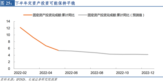 结合以上固定资产投资的重点三部分分析,房地产投资偏弱,基建投资与制造业投资有望支撑全年投资,我们预计5月份固定资产投资完成额累计同比可能在5.4%左右,二、三季度累计同比分别为5.3%、4.3%,全年固定资产投资累计同比可能在4.2%左右。