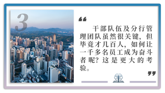 人才难得,奋斗者更难得。由于招聘时注意考察应聘者的工作动力,尽量选拔有较强奋斗意愿的高素质人才,那几年新招的百余名员工在各自岗位上奋勇争先,逐步成长为分行各专业领域的骨干,并陆续走上管理岗位。干部带头,再加上这些“鲶鱼”,分行管理部门的整体敬业度得到极大提升。