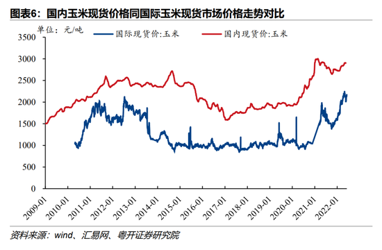 2、国内粮价一般高于国际粮价:成本因素和进口配额支持高粮价