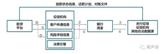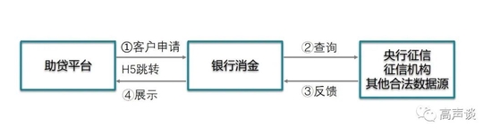 助贷平台全程未与客户有任何信息交互,只提供信贷产品广告界面和贷后信息展示界面,因此也不用通过征信机构居中传递。