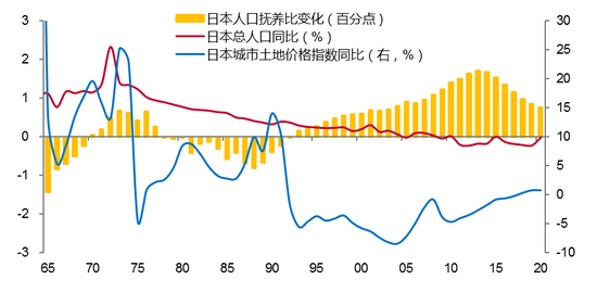 日本的总人口走势、人口抚养比变化与土地价格走势
