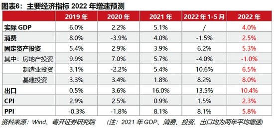 在疫情缓解、政策发力和经济内生修复的推动下,经济总体呈恢复态势,增长动能不断切换。疫情之前的2019年,经济主要依靠消费和房地产投资拉动,增速分别高达8.0%和9.9%;2020年疫情爆发之后,中国率先恢复生产,出口和房地产投资成为主要拉动力,下半年同比分别增长12.6%和11.4%;以两年平均增速来看,2021年出口继续保持16.0%的超预期增长,制造业投资明显回暖,但房地产投资于年中开始走弱;2022年上半年,除了出口和制造业投资延续高增以外,基建投资开始明显发力。