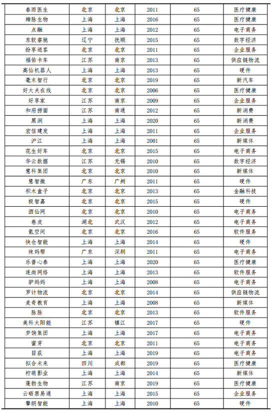 从行业企业数量分布来看,电子商务、医疗健康、硬件领域独角兽数量位列前三,企业数量分别为46家、46家、43家。
