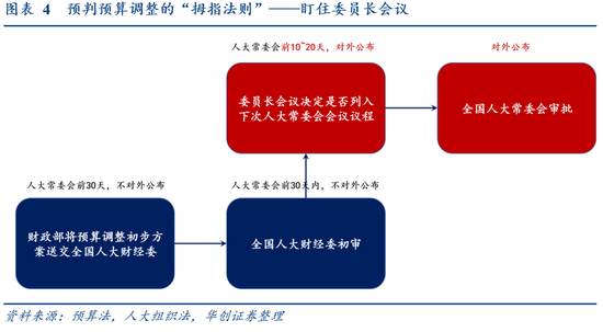 对市场而言,一旦涉及预算调整,把握“拇指法则”——盯住委员长会议即可,因其是最早见诸报道时点,最近一次在7月底前后。预算调整方案需由人大常委会审批,人大常委会一般每两个月举行一次,通常在双月下旬,年内仍有8月、10月、12月3次会议时点;人大常委会日期、议程由委员长会议拟定,委员长会议一般在人大常委会前约10~20天举行,通过当天报道即可知10~20天后的人大常委会是否有相关议程,后续关注7月底、9月底、11月底前后的委员长会议拟定议程是否包含提前发行相关事项。
