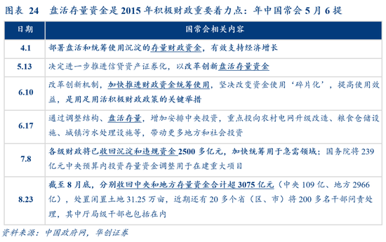历史上盘过多少?2015年盘活存量资金曾经成为积极财政重要着力点(年中国常会5月6提,见图24),加上中央财政首次使用1370亿中央结转结余资金,盘活量超5000亿,相当于提高赤字率0.8个百分点。