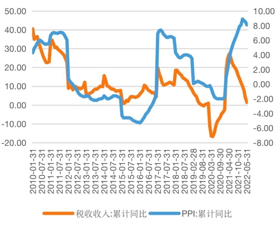 图8 税收收入和工业生产者出厂价格指数(PPI)