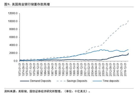 ■ 美国活期存款比例高,另外创新推出货币市场存款账户(MMDAs)与MMF抗衡,MMDAs发展迅猛有效避免了存款大规模流失。