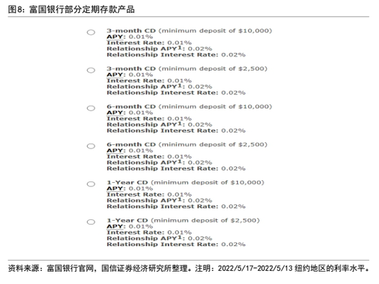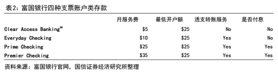 按照监管要求,美国存款账户则被划分为交易账户和非交易账户,其中交易账户主要包括活期存款账户,该类账户主要是为了签发支票,不支付利息或者利息非常低。非交易账户包括定期存款账户和储蓄存款账户,该类账户一般不能直接签发支票,是客户为获取利息收入或存取资金的安全方便等目标而开设的账户。交易账户和非交易账户的关键区别在于是否存在支取或转账限制,其中,交易账户不限制客户支取或转账,但大多不支付利息;而非交易账户存在法定的支取或转账限制,其中定期存款必须设置提前取款支取罚金,储蓄存款仅提供有限的转账次数。以富国银行个人存款账户为例,期限少于3个月的定期存款提前取款罚金为1个月利息,期限在3~12个月的定期存款提前取款的罚金为3个月利息,期限在12~24个月的定期存款提前取款的罚金为6个月利息,期限在24个月以上的定期存款提前取款的罚金为12月的利息。
