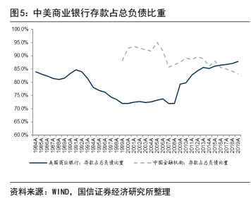 我国存款虽然已经完成利率市场化,但多因素制约下存款成本刚性仍比较强,与市场利率相关度明显低于美国。另外,我国金融市场不发达且居民储蓄意愿较高,因此我国存款结构中定期存款比例较高,这也带来我国存款成本处在较高水平。