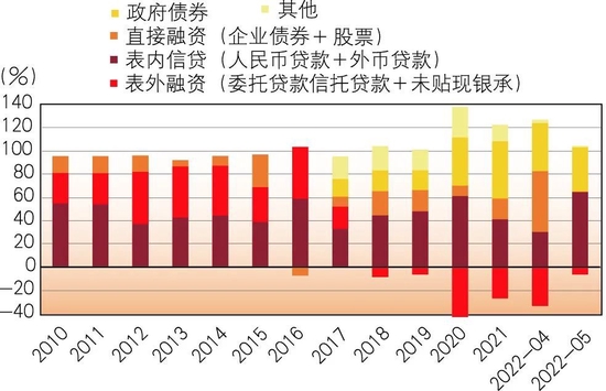 图2 2010年至2022年5月社会融资结构