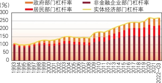 图4 1993年至2022年3月实体经济部门杠杆率