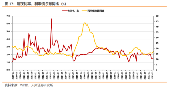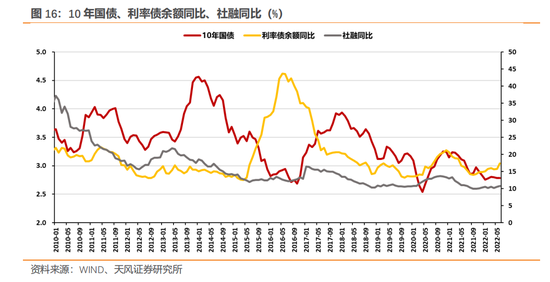 其次,10年国债与利率债余额同比的关系需要通过社融相联系。如果利率债余额同比回落同时社融同比回落,则利率债余额同比回落可能带来债市机会,最近的如2021年。