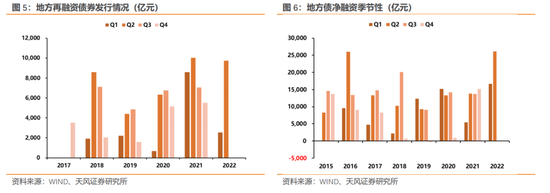 第三,考虑再融资地方债。下半年地方债到期18059亿元,今年地方政府偿债压力较大,我们预计,下半年再融资债券发行规模将至少覆盖到期规模,基本保持2021年以来125%覆盖比重。折合下半年再融资地方债发行22574亿元,净融资4515亿元。其中三季度净融资2840亿元,四季度净融资1675亿元。
