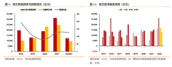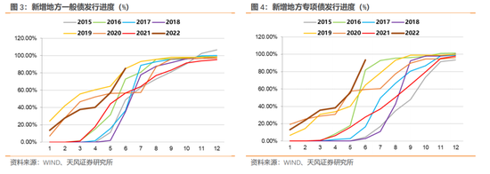 第二,考虑新增地方债。按照年初预算,下半年新增政府债余额约为3490亿元,算上2021年没有发完的1500亿元,下半年剩余新增地方债预计在4990亿元左右。按照靠前发力要求,我们预计,4990亿元新增地方债将在三季度发行完毕。