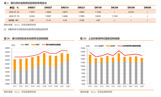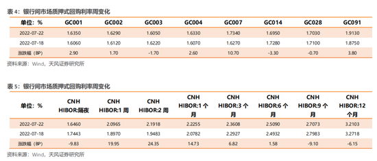 本周(7.18-7.22)央行公开市场净投放130亿元,资金面持续宽松。周一,央行开展逆回购操作7天120亿元,当日到期30亿元,净投放90亿元,资金面整体均衡,尾盘边际趋松;周二,央行开展逆回购操作7天70亿元,当日到期30亿元,净投放40亿元;周三,央行开展逆回购操作7天30亿元,当日到期30亿元,净投放0亿元;周四,央行开展逆回购操作7天30亿元,当日到期30亿元,净投放0亿元;周五,央行开展逆回购操作7天30亿元,当日到期30亿元,净投放0亿元。本周资金面持续宽松。