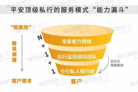我的脑海中呈现出了一个专家能力的“漏斗型”汇聚体系。在平安私人银行总行层面进行“漏斗”大开口侧的专家能力网罗,然后再通过“总行-分行”的协同作战机制、以及分行对客户的深入了解,在“漏斗”的小开口侧将资源精准滴灌于客户所需。