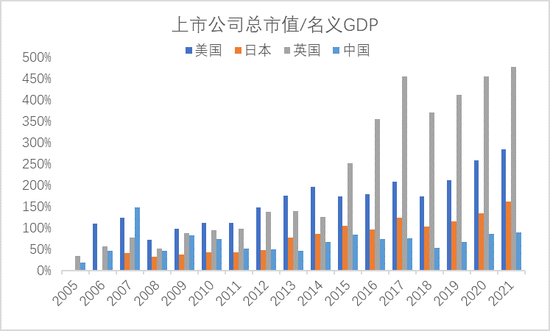 中国上市公司市值占GDP比例仍较低