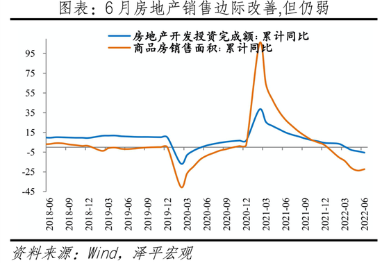房地产仍然是第一大支柱行业,新旧动能转换有个过程。6月房地产投资同比增长-9.4%,较5月下降1.6个百分点;1-6月房地产投资累计同比增长-5.4%,较1-5月下滑1.4个百分点。
