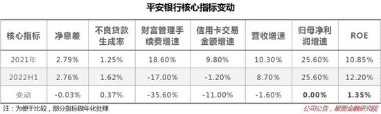 可是,即便如此,平安银行贷款占总资产比重依然较去年末提升了0.88个百分点,资产结构仍在继续优化。从结果上看,平安银行的经营业绩指标依旧亮眼:归母净利润同比增长25.6%,增速与2021年持平;净资产收益率(ROE)12.2%,较2021年提升1.35个百分点。