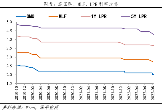 继8月15日央行降低MLF利率10bp,8月22日LPR再迎非对称降息。5年期LPR报价再度大幅下降15bp,旨在稳楼市,促进房地产软着陆;1年期利率小幅下降5bp,旨在稳增长,给实体经济空中加油。