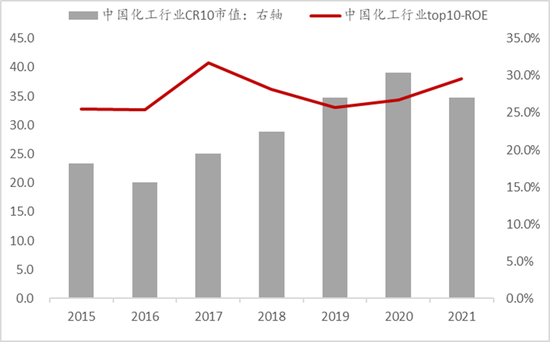 美国传统制造业集中度在1960-80年代大幅提升,以美国化工行业为例,其集中度稳定在70%后,龙头公司ROE显著改善。我国处于向龙头集中的过程中,近年来随着集中度提升,头部公司ROE也在增厚。但目前化工行业前十大公司集中度不足30%。美国金属及非金属采矿业CR5市值集中度稳定在50%附近,而A股则在20%附近,龙头公司份额集中空间还较大。