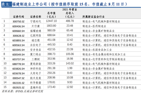 福建省高端制造业发达,坐拥一大批卓越的制造业企业,其中包含多家市值超千亿或收入超百亿的“超级公司”如宁德时代、片仔癀、厦门钨业、厦钨新能、三钢闽刚等,涵盖电器机械、医药制造、金属冶炼加工等多个行业,为福建高端制造业的高速发展提供动力,其中制造业公司宁德时代总市值更是突破万亿。
