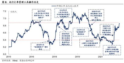 在此期间我们判断,中国央行将主要通过汇率工具,管理阶段性人民币贬值预期。例如逆周期因子、远期售汇业务风险准备金、外汇存款准备金等。随着当前人民币汇率接近6.9,央行可能很快就会推出增量工具,对冲人民币贬值压力,有效管理“7”这个整数位心理关口。