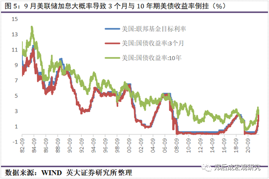 从长短端利差看,8月29日3个月美债收益率为2.97%,而10年期美债收益率为3.12%,二者相差15个基点。9月美联储不论是加息50个基点,还是加息75个基点,大概率导致3个月与10年期美债收益率倒挂。长短端利差倒挂意味着美国宏观经济进入衰退阶段。根据我们此前复盘的结论,预计美联储在2023年11月之前降息。