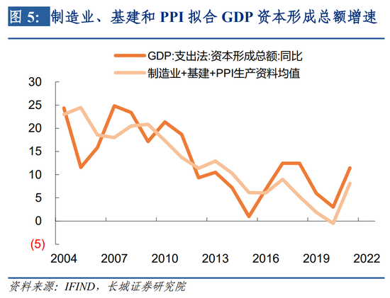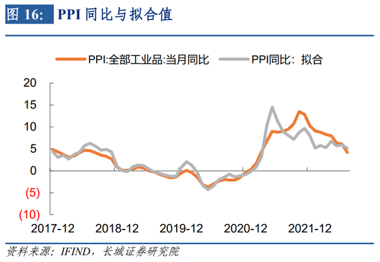 在名义GDP同比拟合值的基础上,若要对实际GDP同比进行拟合,需利用GDP平减指数进一步调整。GDP平减指数可以CPI与PPI(均为月度公布)拟合,效果较好,且CPI与PPI也有较多高频指标可以跟踪,我们将在下一部分对高频指标的筛选和拟合进行详细介绍。