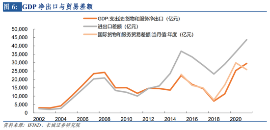 净出口方面,由于服务贸易增加较快,2015年开始外汇管理局公布了月度的国际货物和服务贸易差额,这一数据和GDP净出口相差不大。在2015年之前,GDP净出口值与海关总署公布的月度的商品贸易差额基本一致。因此2004年-2015年的净出口同比增速我们以贸易差额单月同比增速拟合,2015年之后以国际货物和服务贸易差额单月同比来拟合。